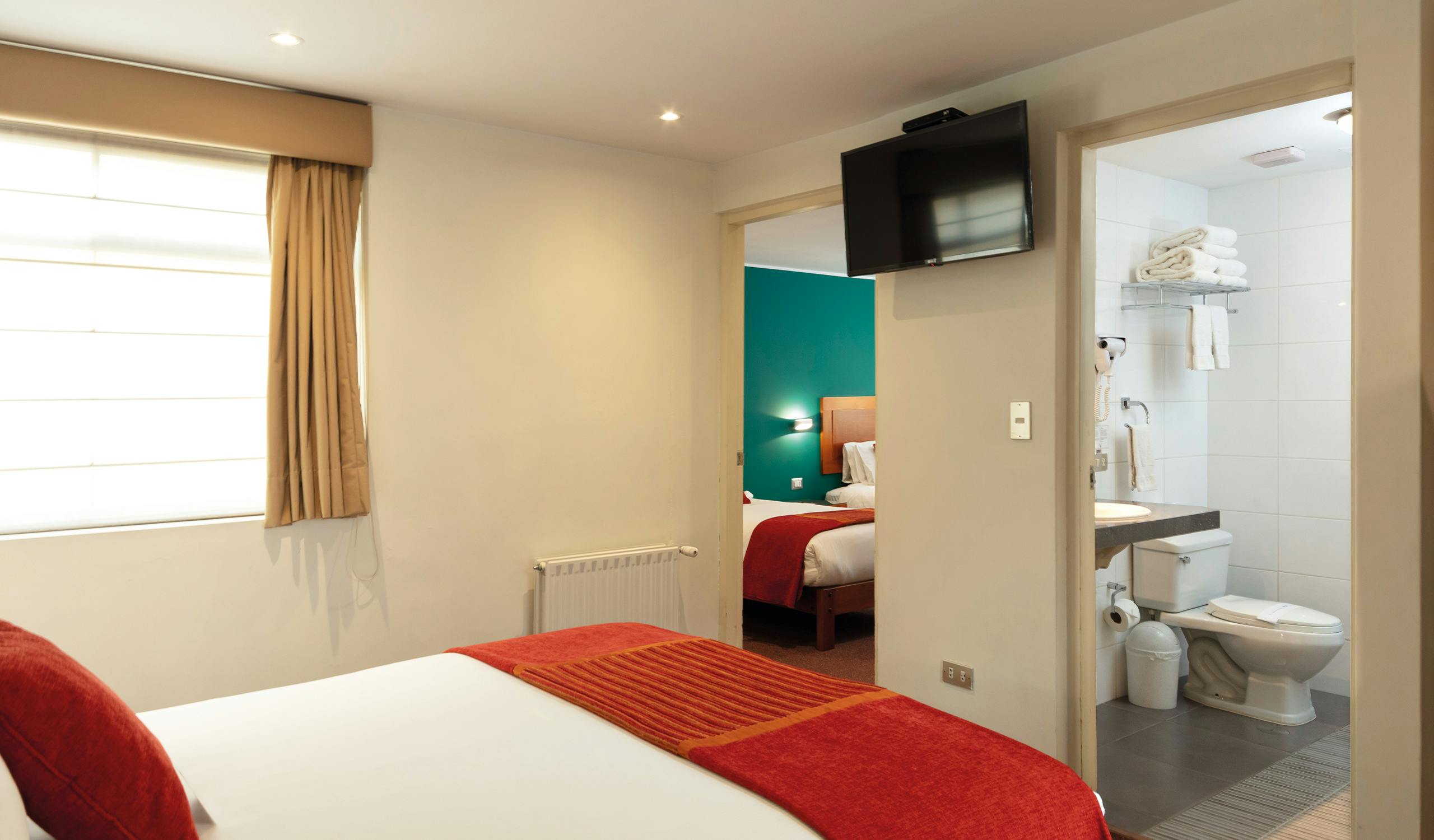 Two (02) connected rooms with capacity up to four (04) people. Two (02) Smart TVs, heating system and 1 full bathroom with shower & amenities. Access to common areas with hot and cold drinks 24h.